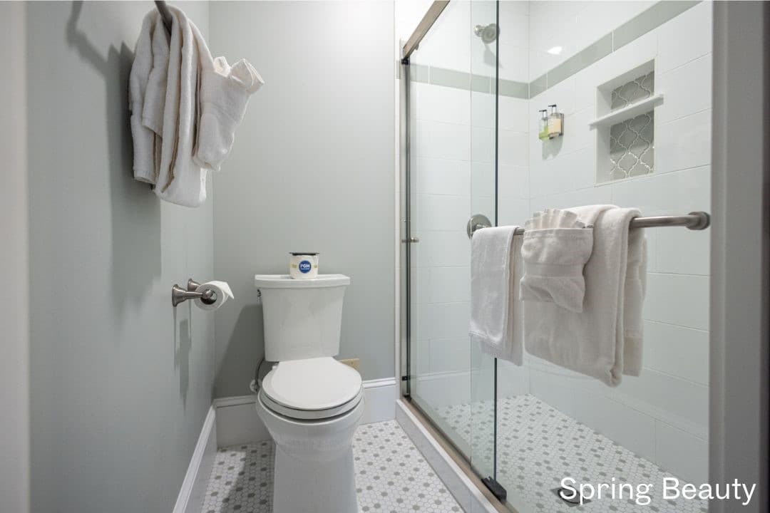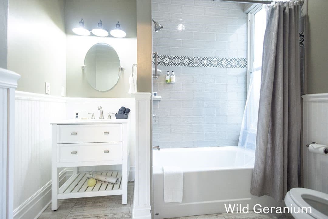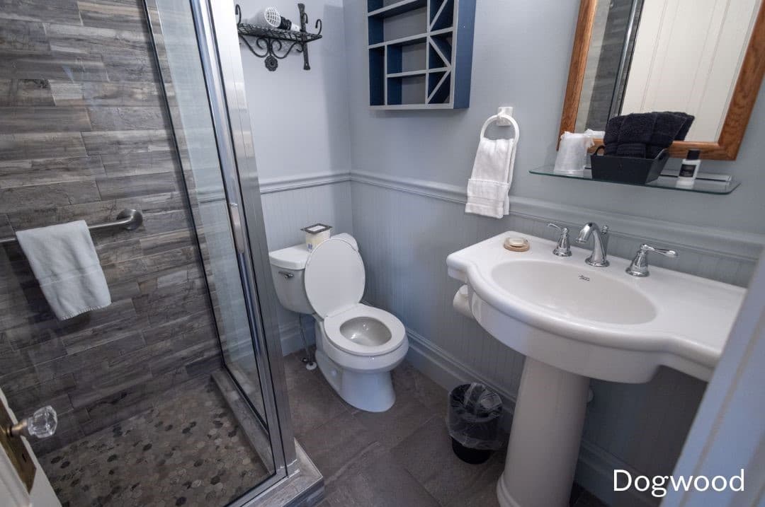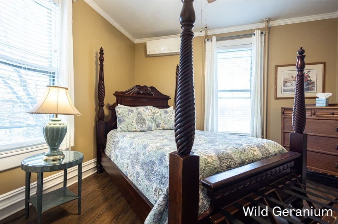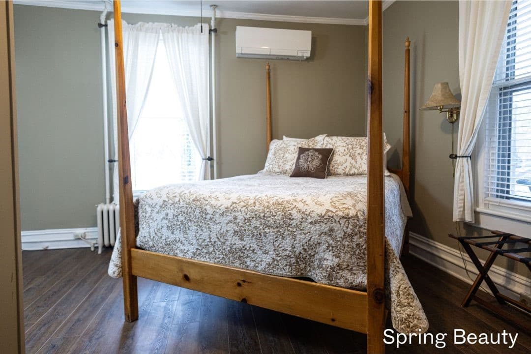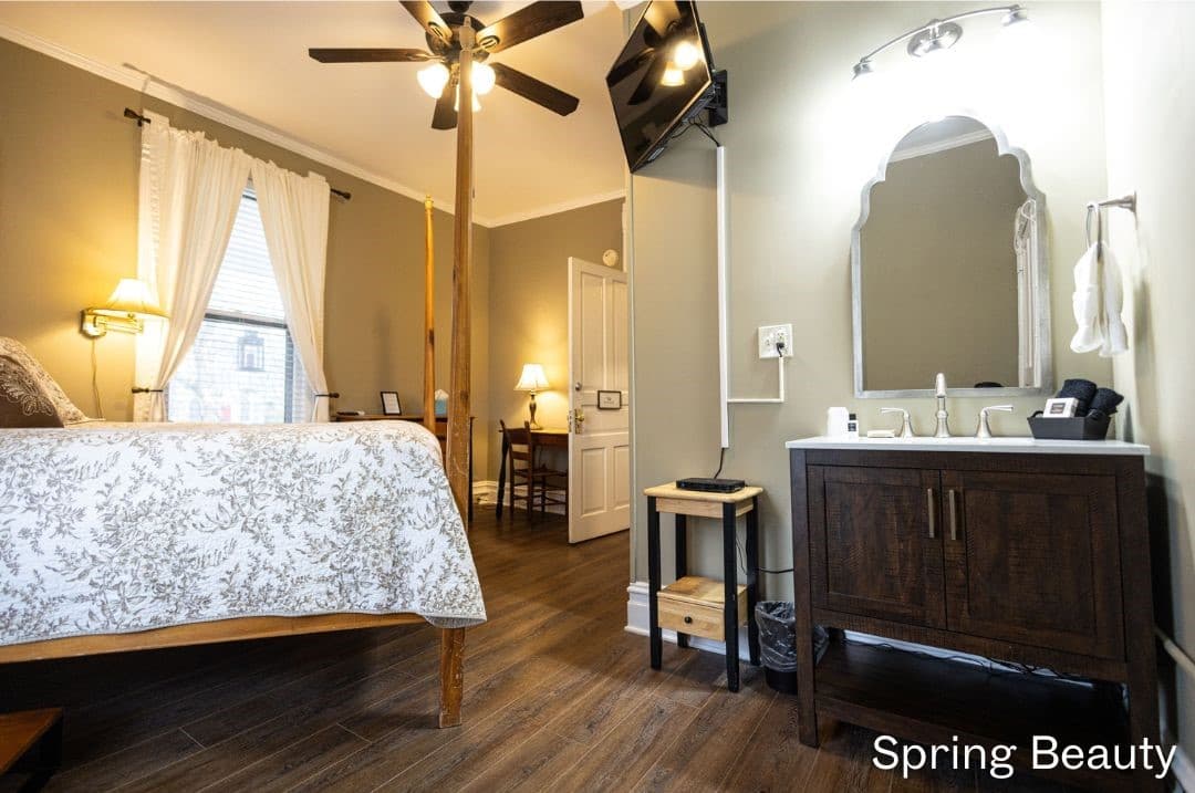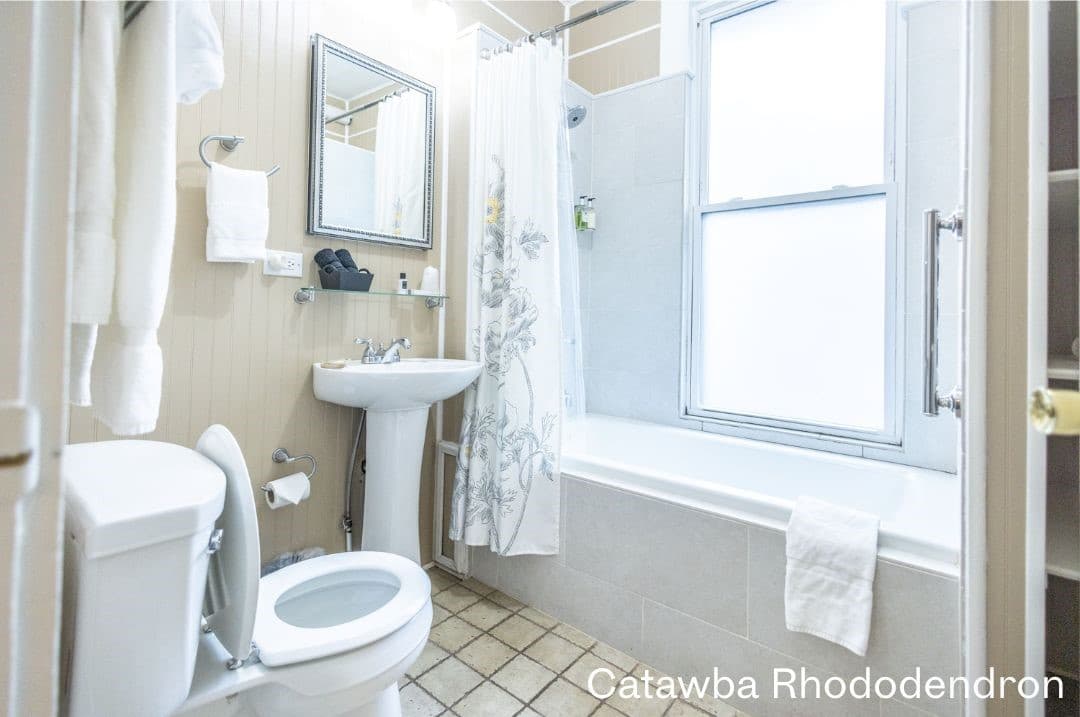 Mountain Laurel is a guest favorite on the 2nd floor with one queen bed and one twin bed. There is also an additional sitting room with a love seat that pulls out into a twin. The charming bathroom has a great clawfoot tub and classic vanity.